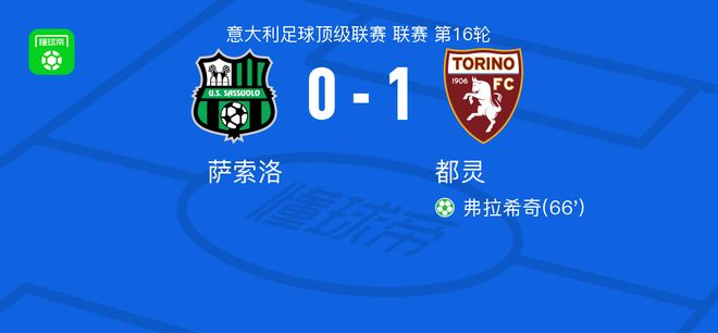 - 都灵1-0萨索洛,弗拉希奇点射制胜